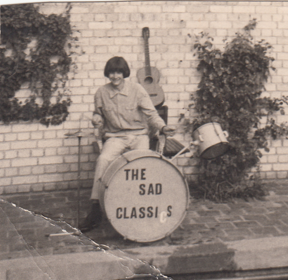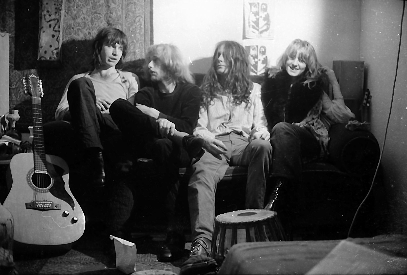 „Fantasia Druck“ im ersten Domizil in der Adlerstrasse in Stuttgart – von links nach rechts: die 12-saitige Akustikelektrogitarre, Fips, Ebby, ich, Olga – Seite 204