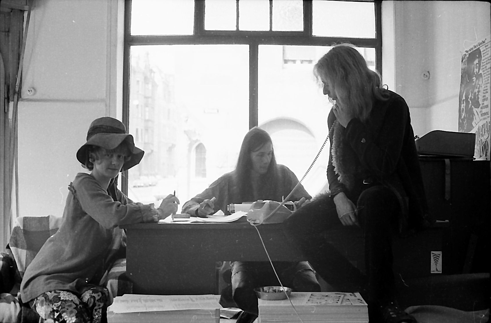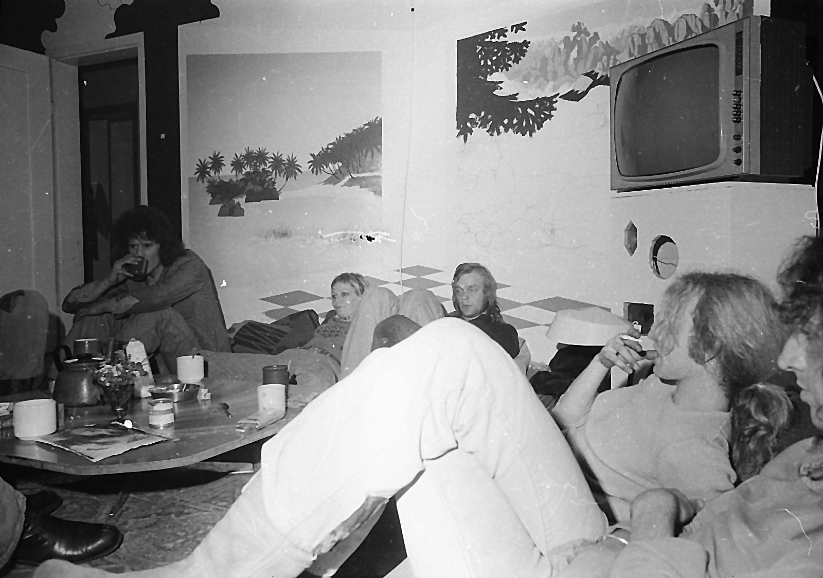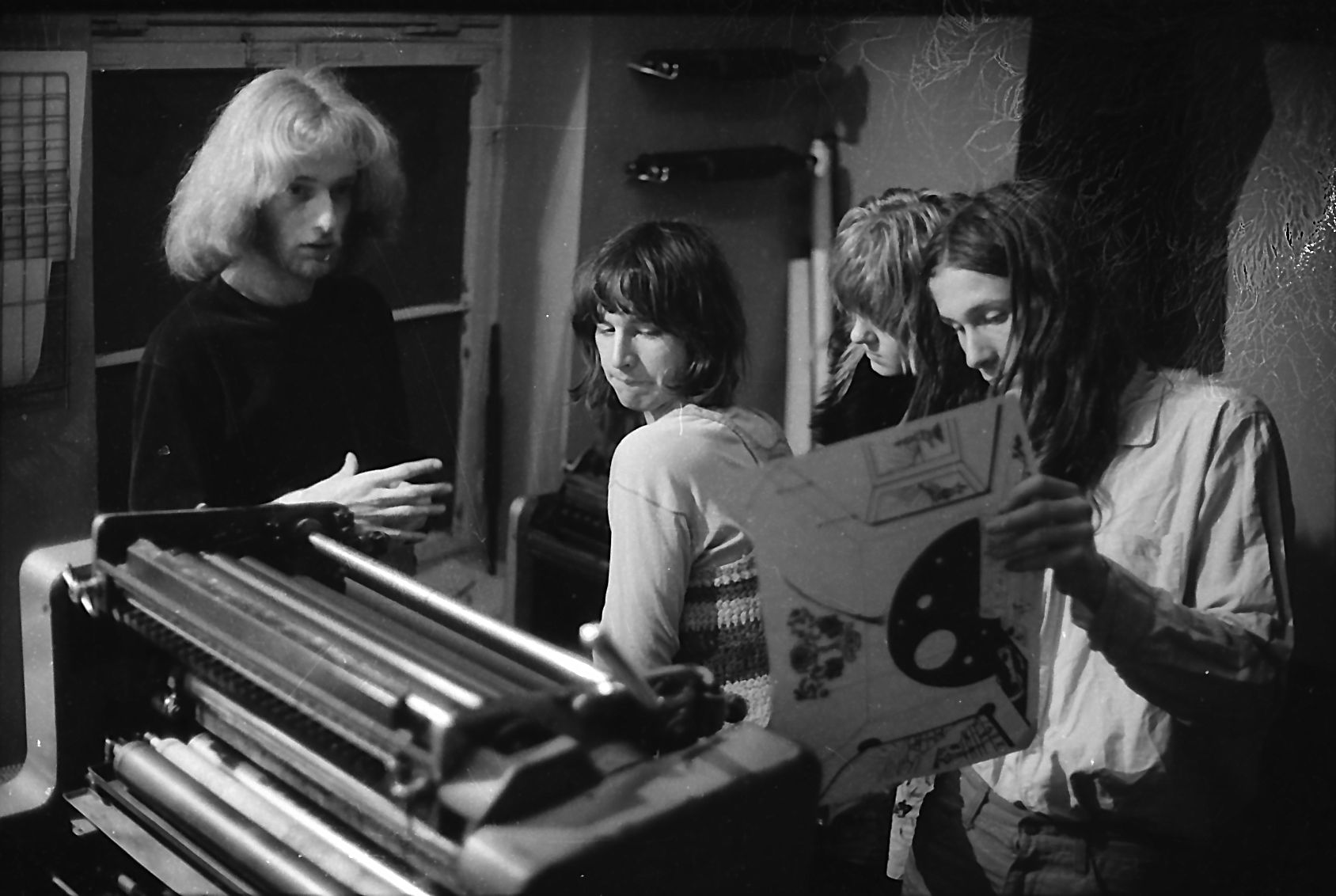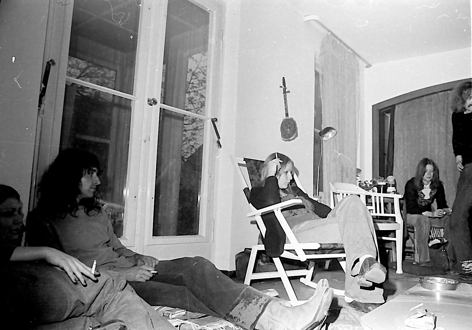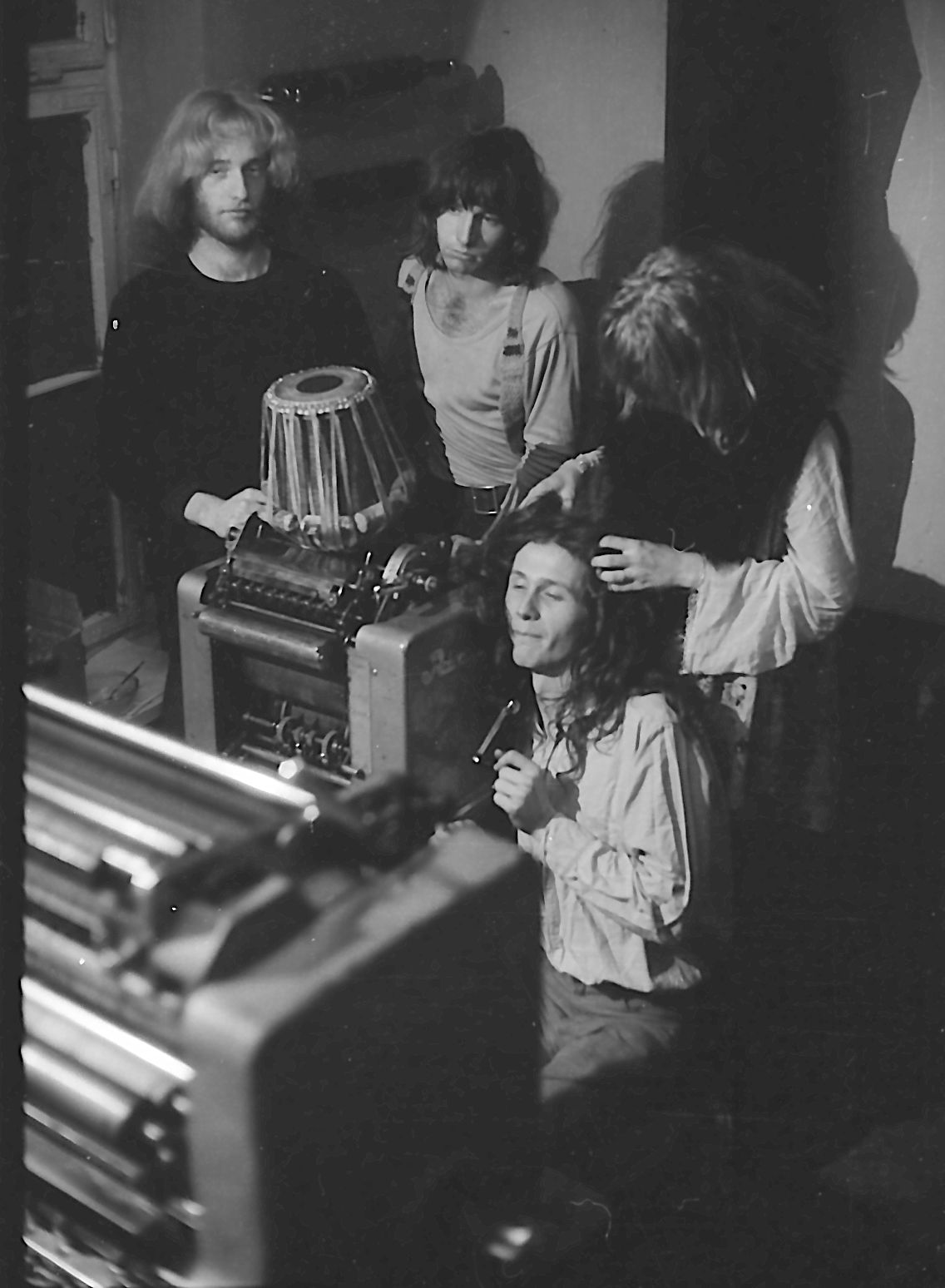 Besuch der Hamburger Gruppe „release“, deren Buch wir druckten; rechts der Schlagzeuger „Zappa“ – Seite 213